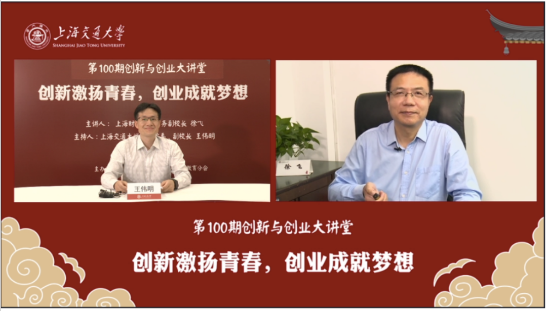 6月16日晚,教育部高等学校创新创业教育指导委员会副主任、中国高等教育学会创新创业教育分会理事长、上海财经大学常务副校长徐飞教授与广大师生一起相约云上,共同探讨中国创新创业教育的发展历程和未来方向。本次讲座由上海交通大学党委常委、副校长王伟明主持。