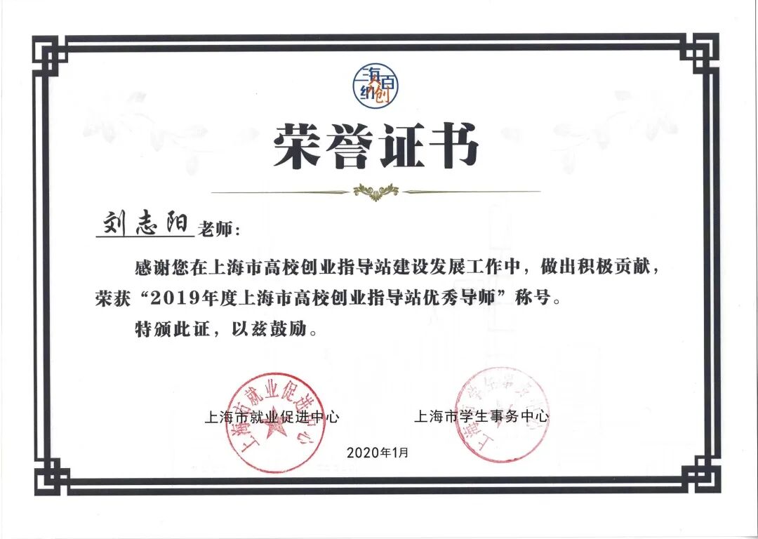 同时,我院执行副院长刘志阳教授获评“2019年度上海高校创业指导站优秀导师”称号。